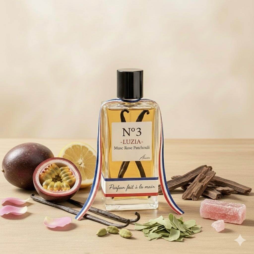 LUZIA – Musc Rose Patchouli N°3, une fragrance captivante qui incarne charme et sophistication.